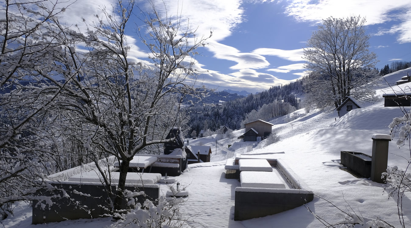 Das Dorf Hemberg liegt auf 945 M.ü.M, eingebettet in die Toggenburger Hügellandschaft.