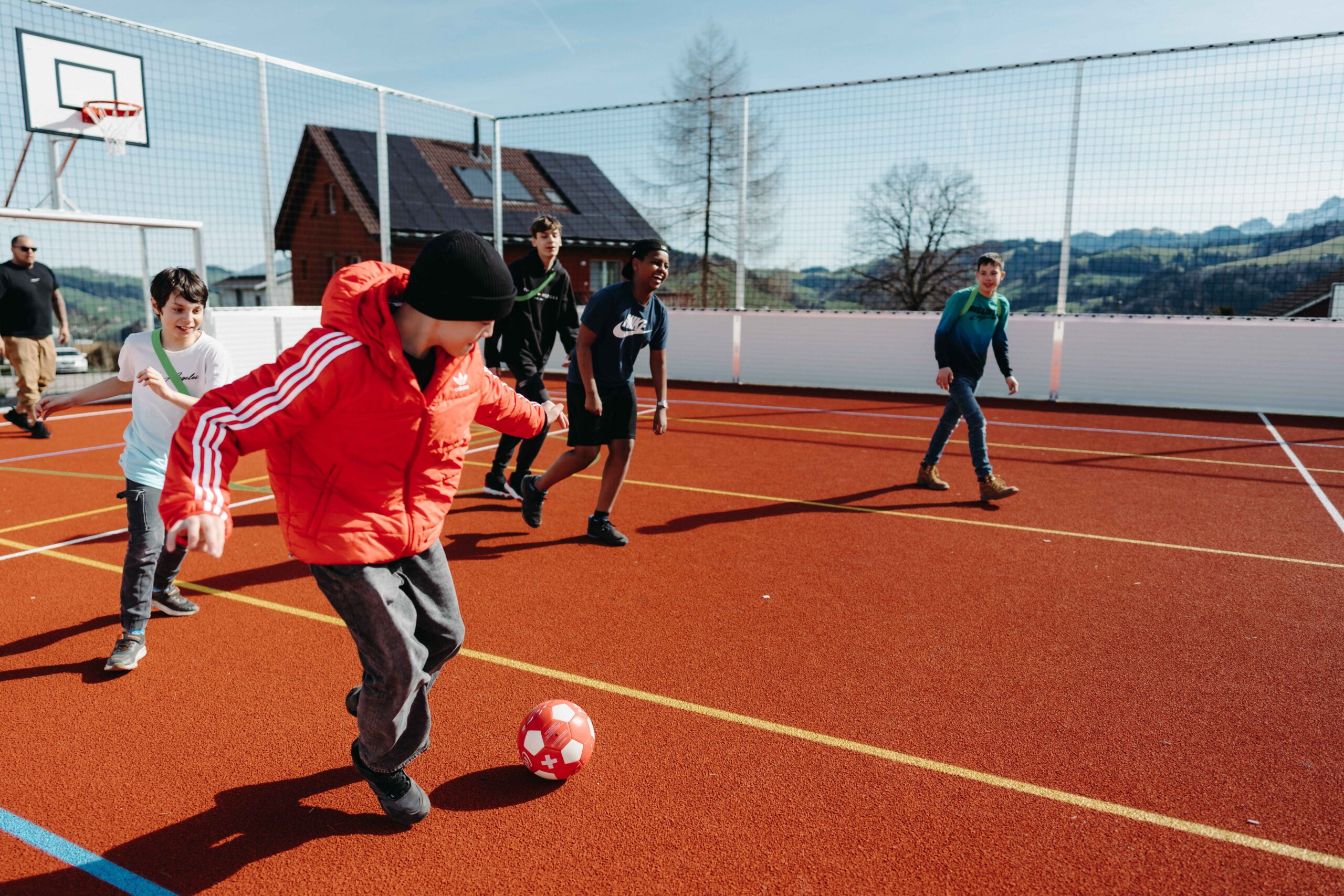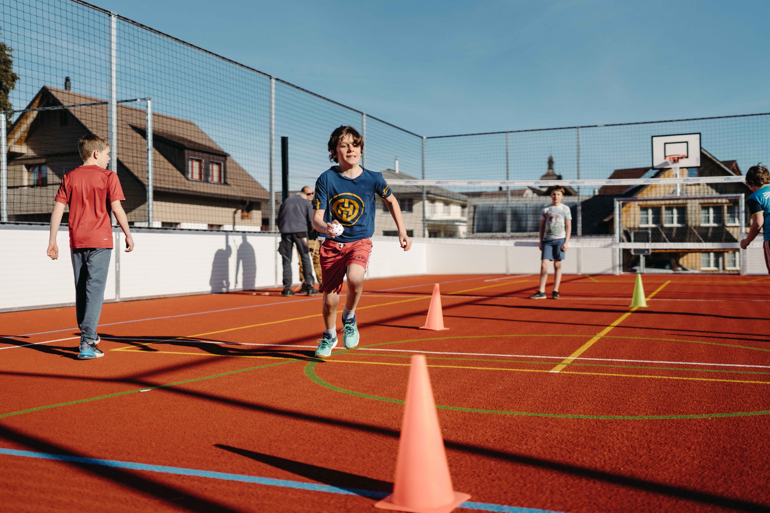 Am 28.09.2023 konnte nach dreimonatiger Bauzeit der neue Sportplatz den Schülerinnen und Schüler übergeben werden.
