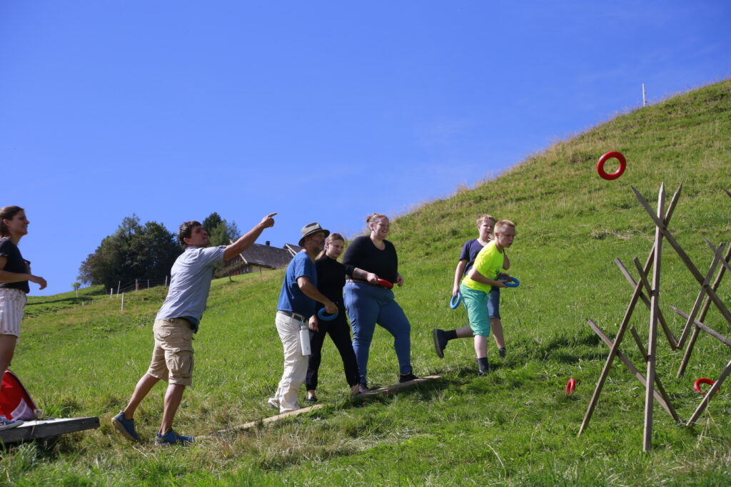 Zweimal im Jahr erleben alle Schülerinnen und Schüler und alle Mitarbeitenden einen Begegnungstag. Zum Start des Schuljahres fand eine Bauernhofolympiade statt. Ziel war es, auf eine spielerische Art und Weise den neuen Bauernhof kennen zu lernen. In gemischten Gruppen gab es verschiedene Posten zu absolvieren.